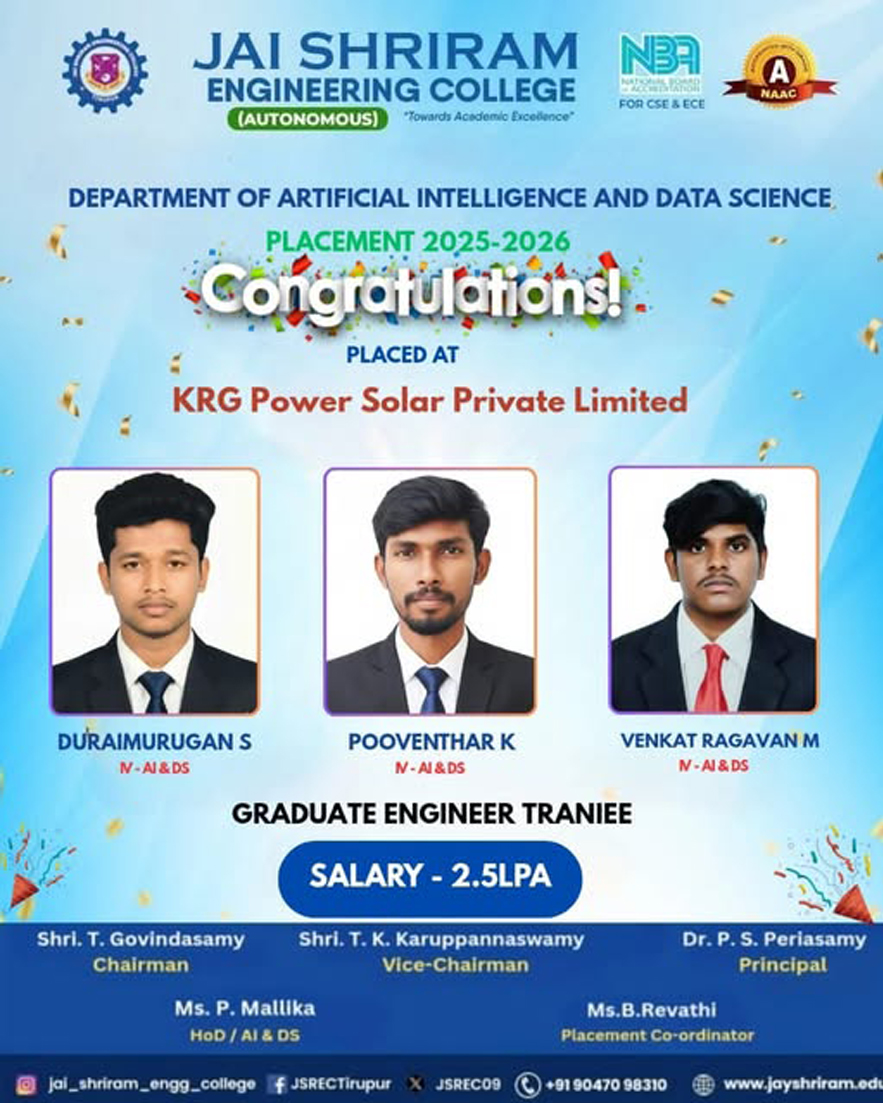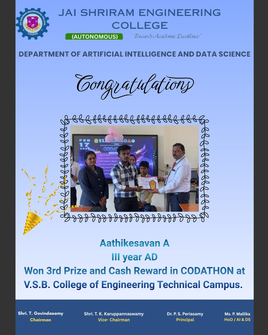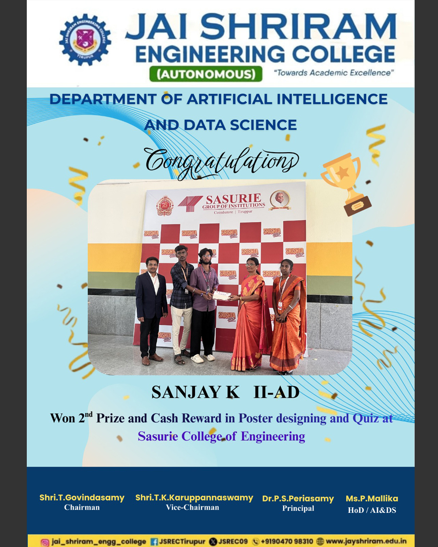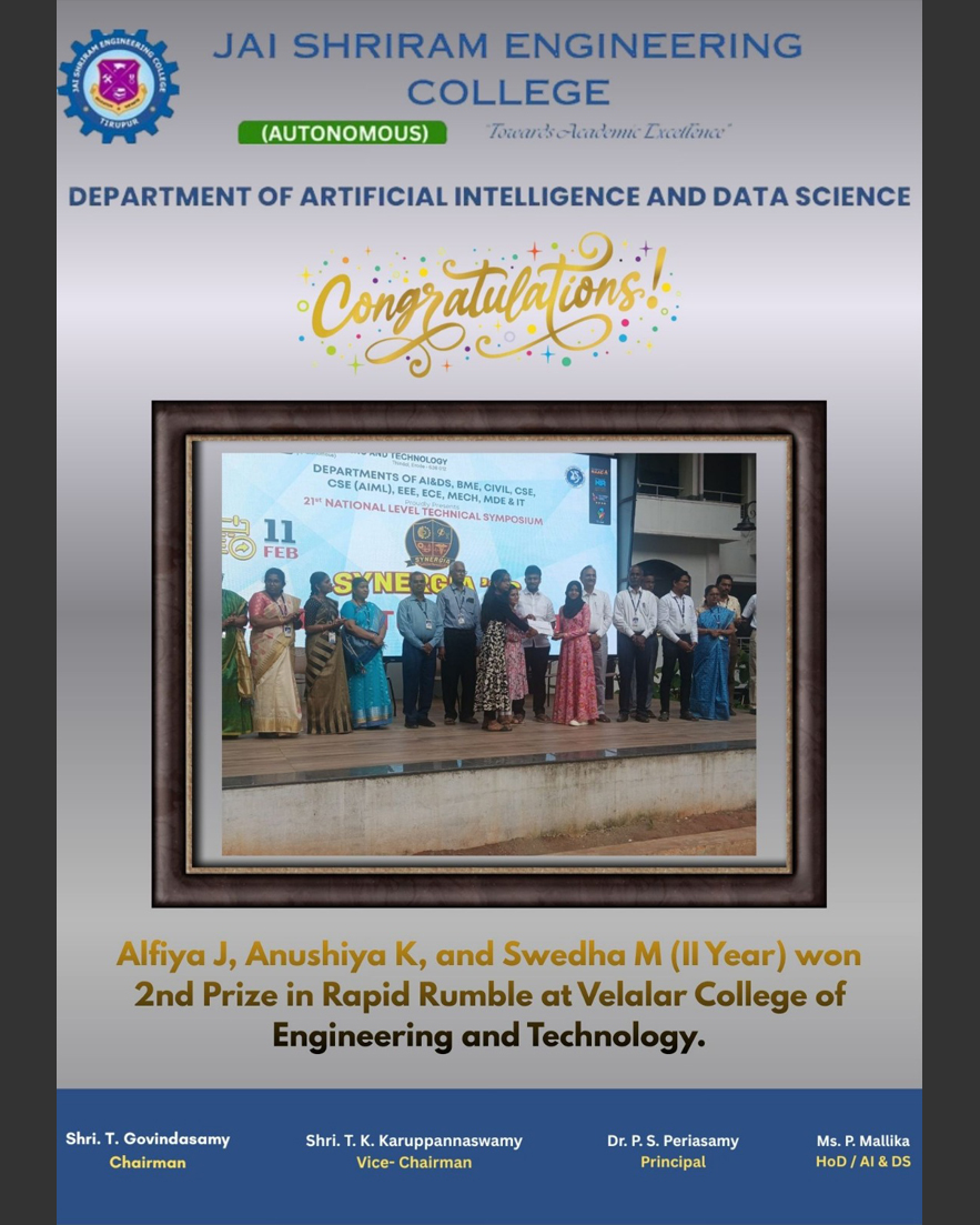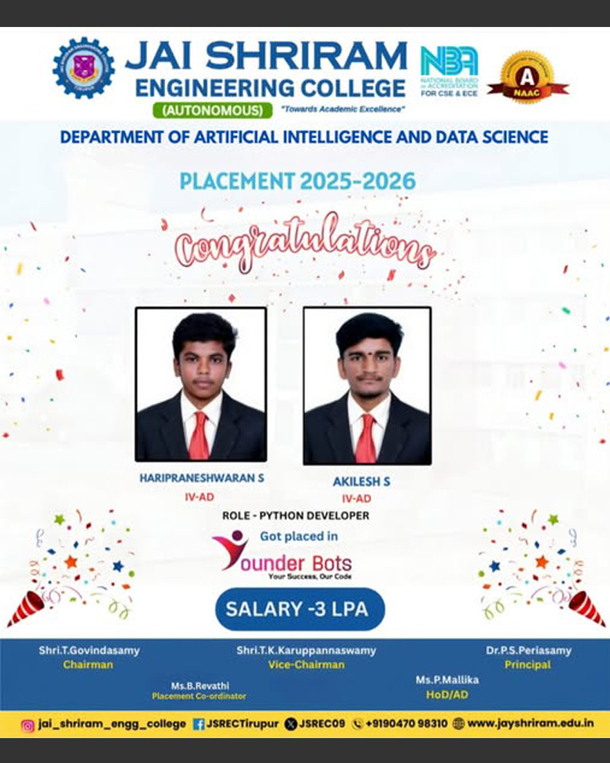 The Department of Artificial Intelligence and Data Science(AI&DS) is introduced in the year 2021 with an intake of 60 students. B.Tech (AI&DS) course is specially designed to enable students to build intelligent machines, software or applications with a cutting-edge combination of machine learning, analytics and visualization technologies.