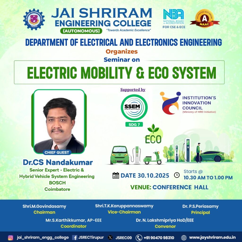 30oct10:30 am1:00 pmSeminar on ELECTRIC MOBILITY & ECO SYSTEM