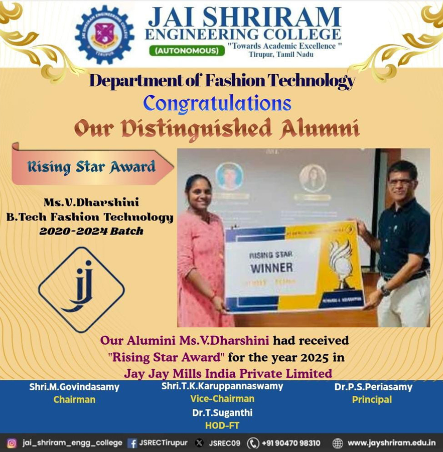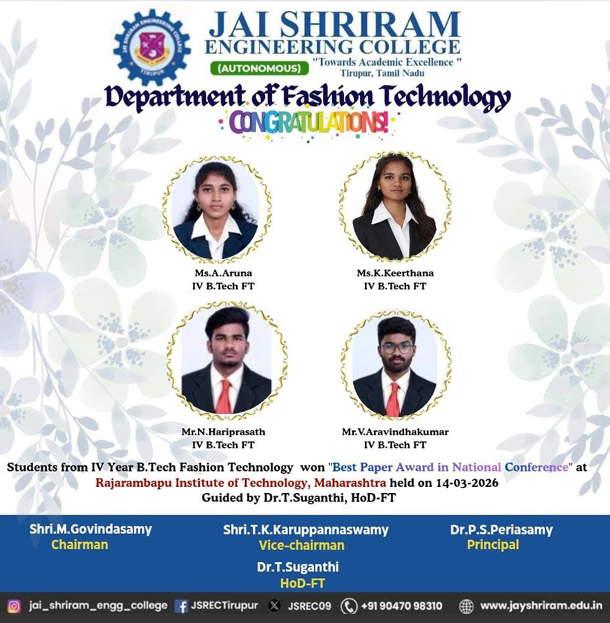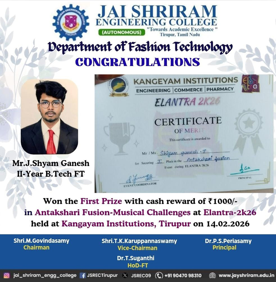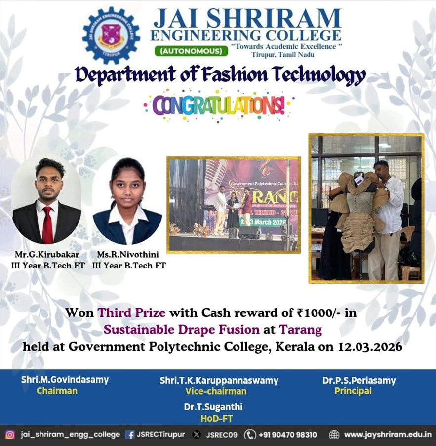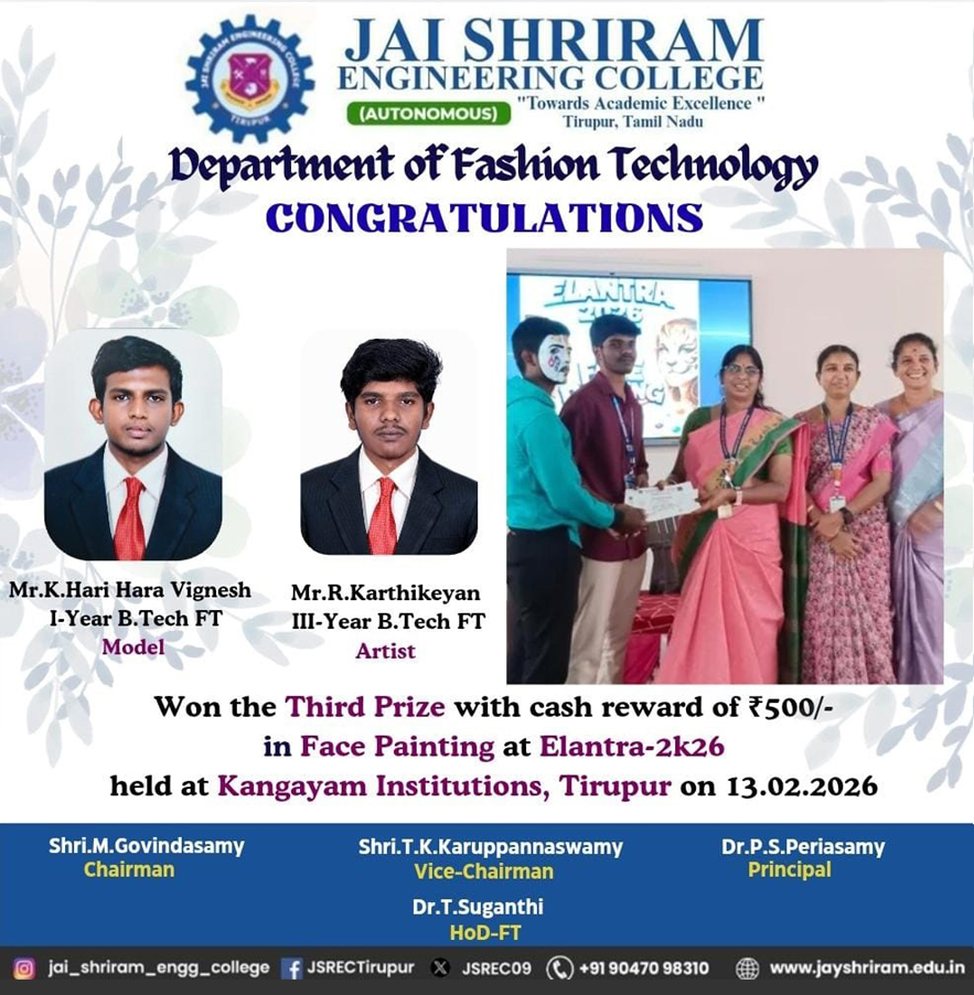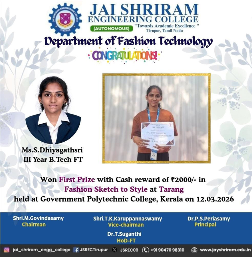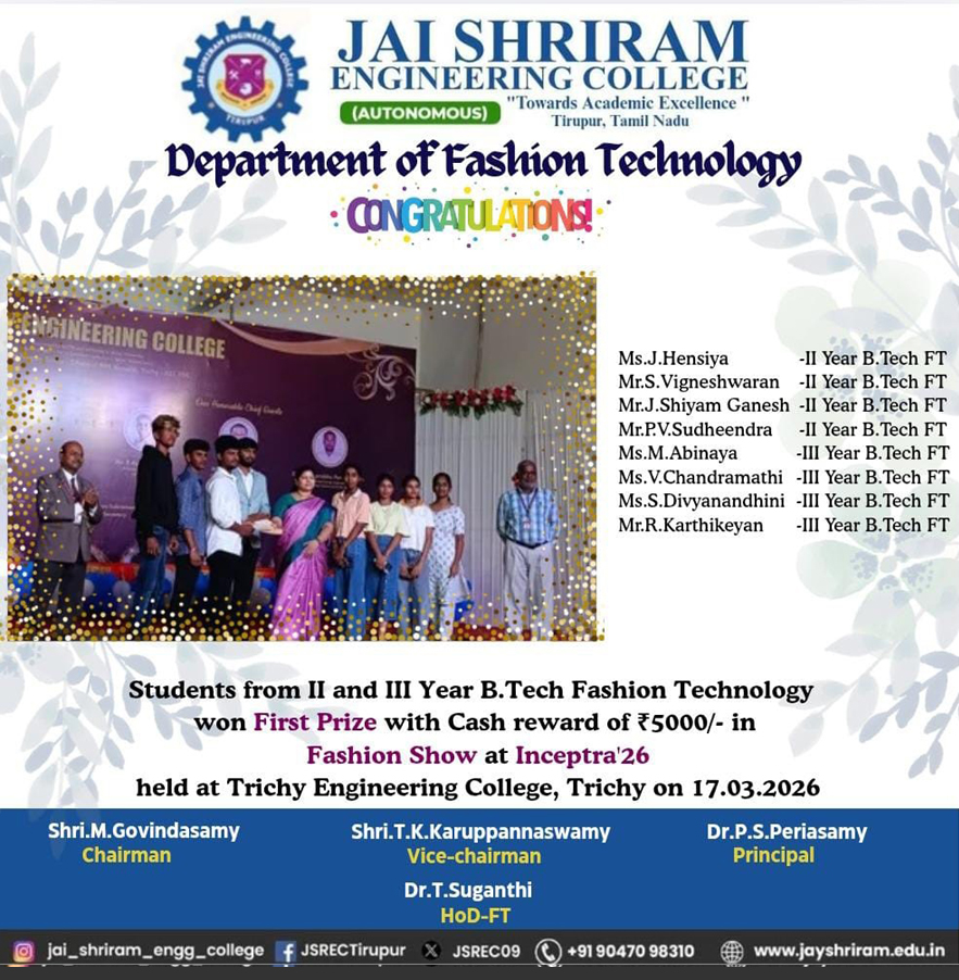 - The special lectures by the industrial experts give wide exposure to the students to know the current trend and technologies adapted in the fashion and garment industry respectively.