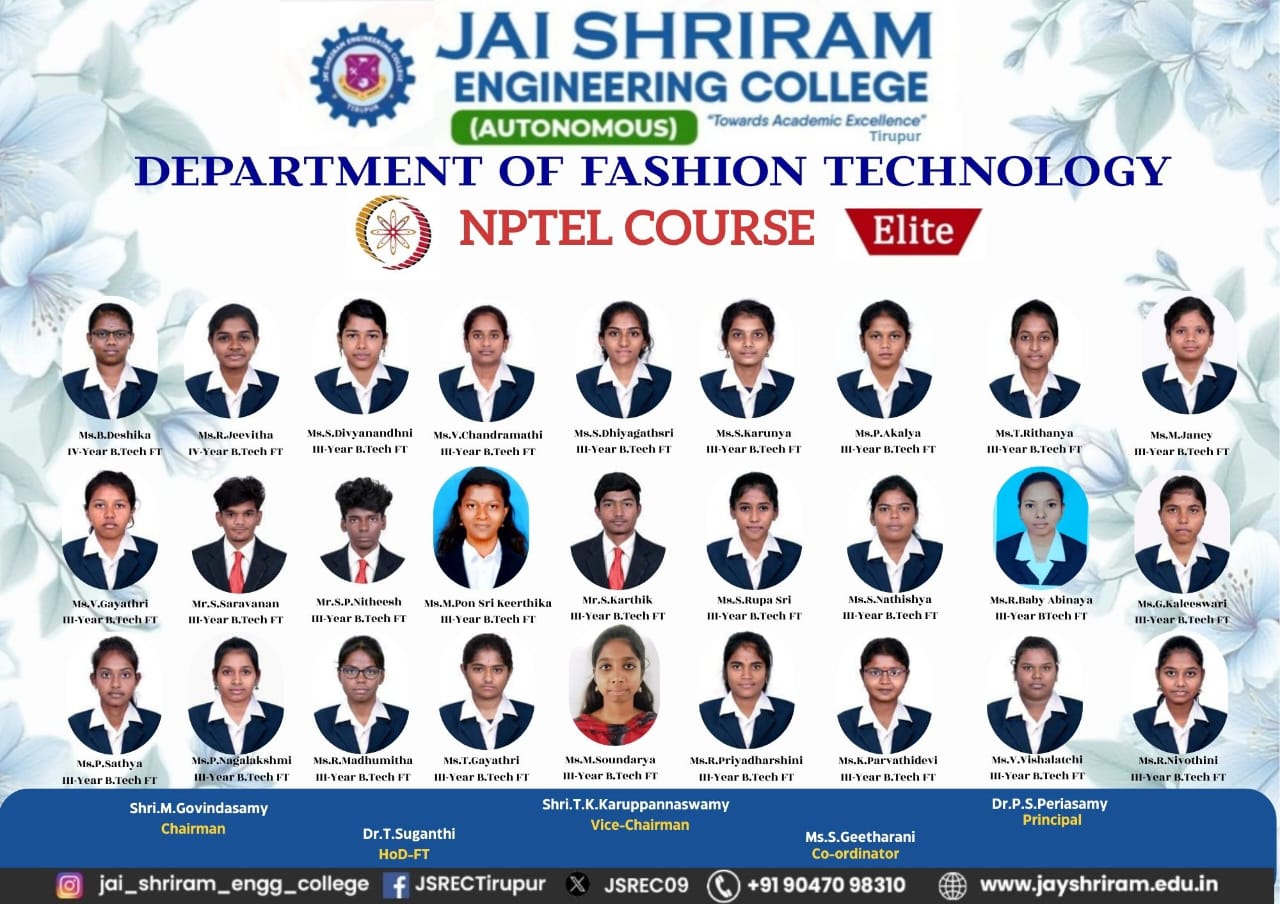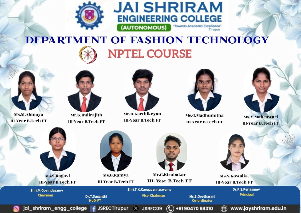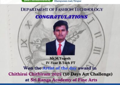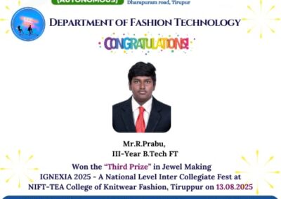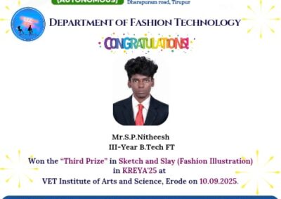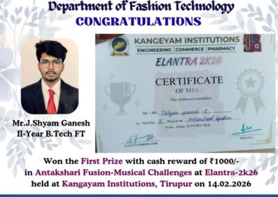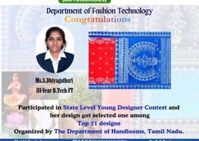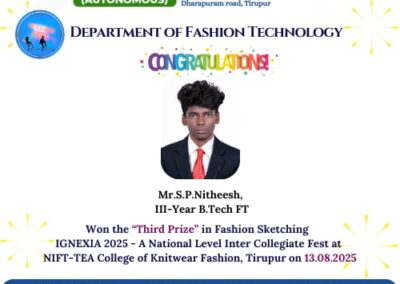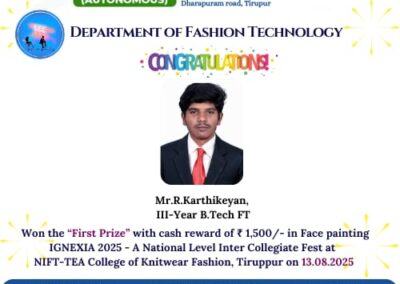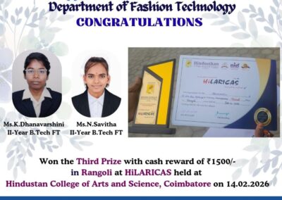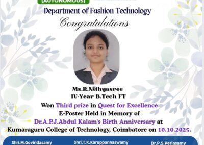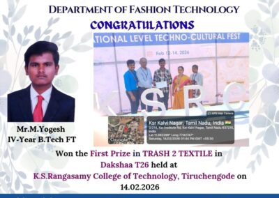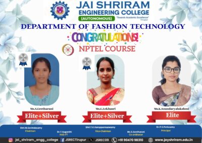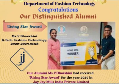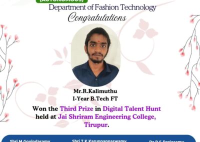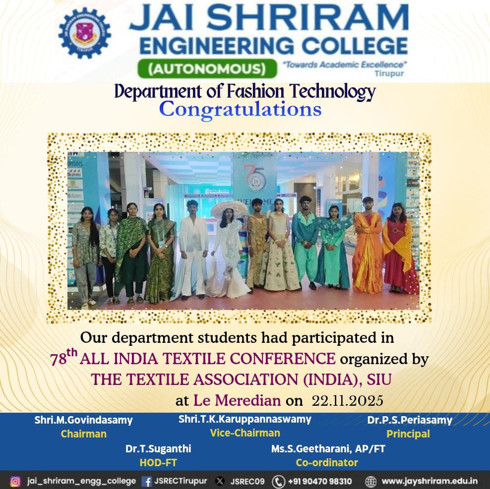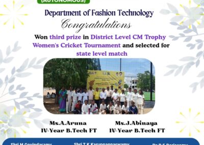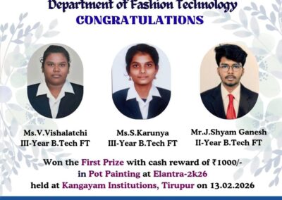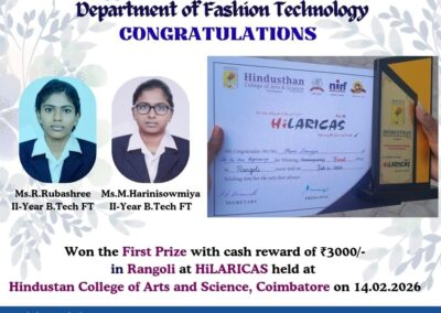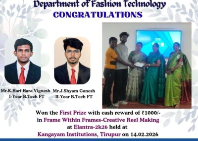 - The special lectures by the industrial experts give wide exposure to the students to know the current trend and technologies adapted in the fashion and garment industry respectively.