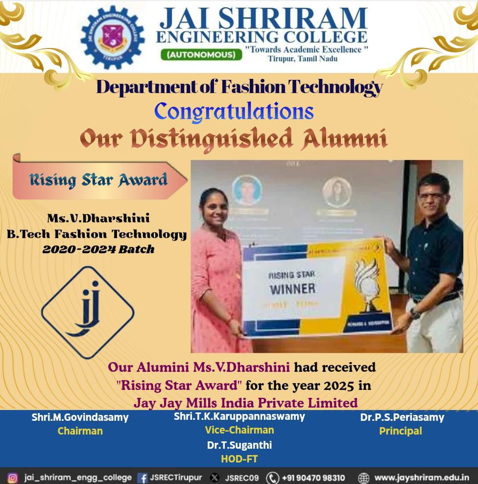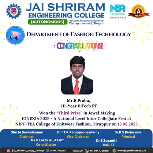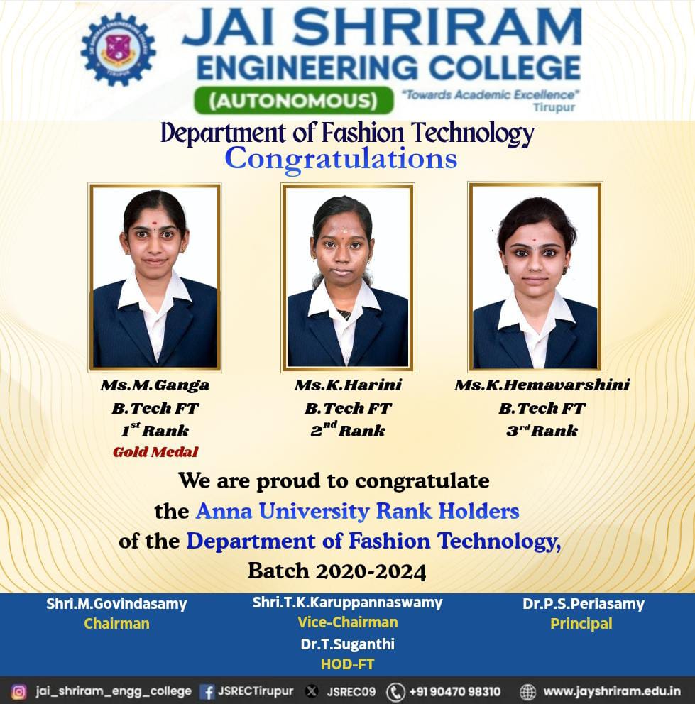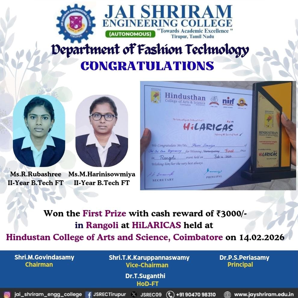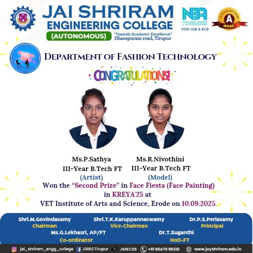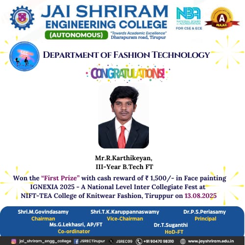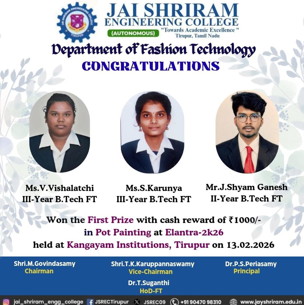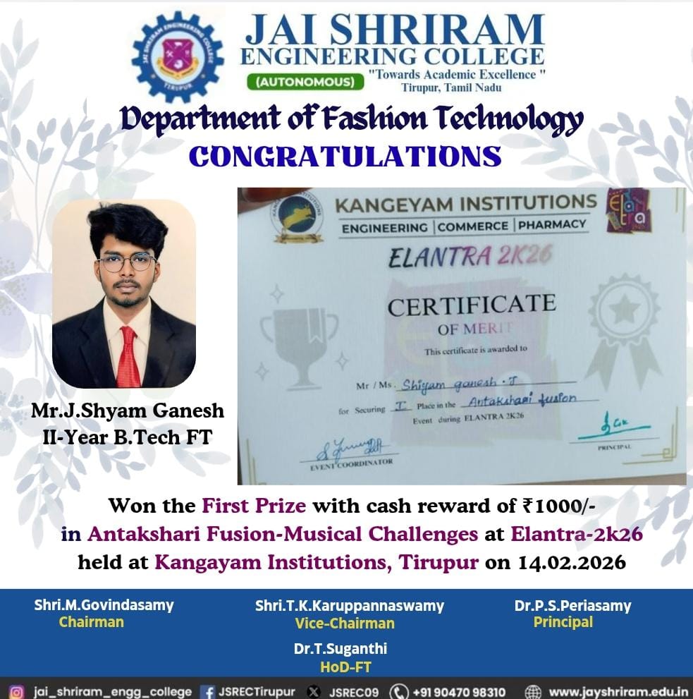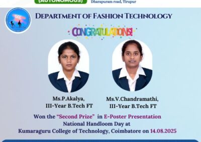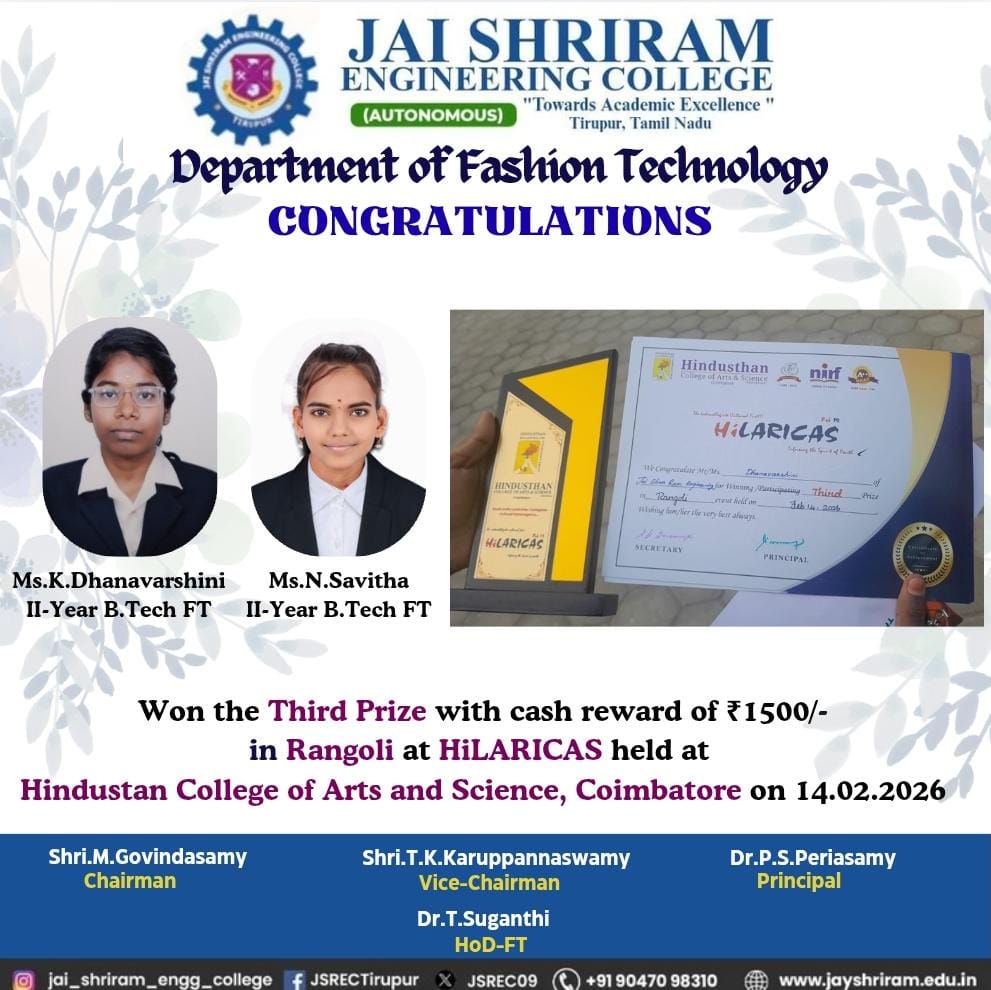 - The special lectures by the industrial experts give wide exposure to the students to know the current trend and technologies adapted in the fashion and garment industry respectively.