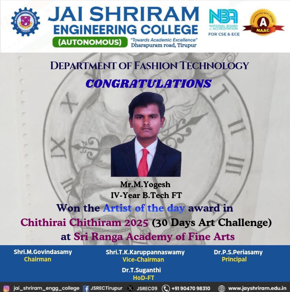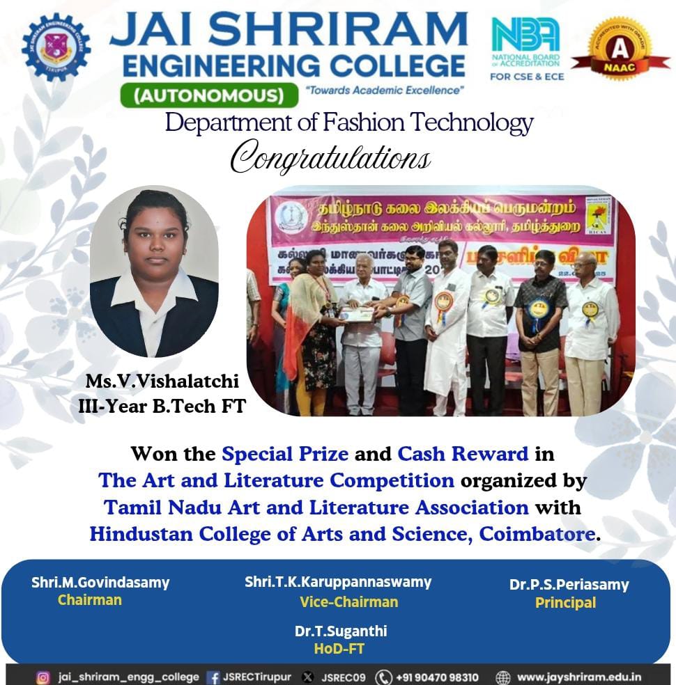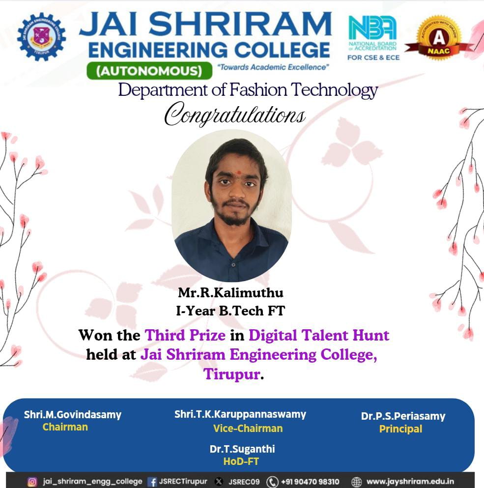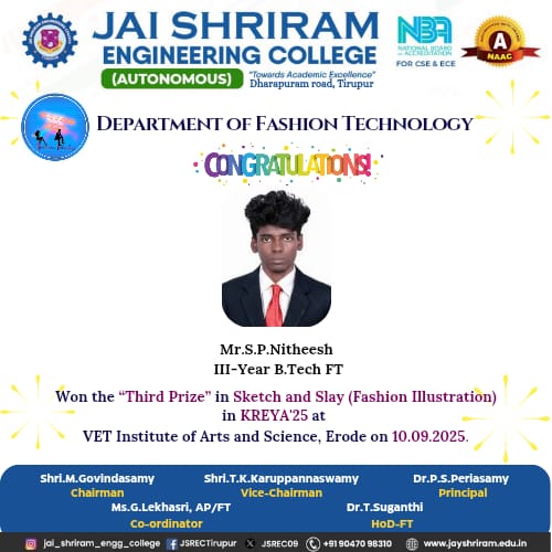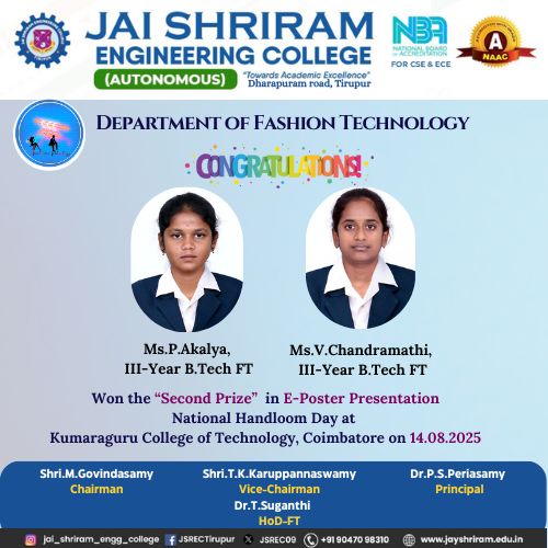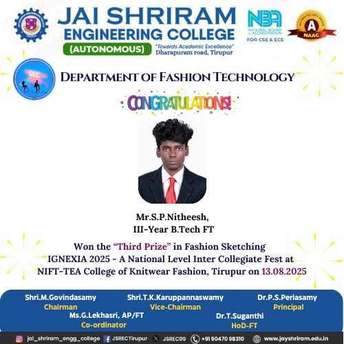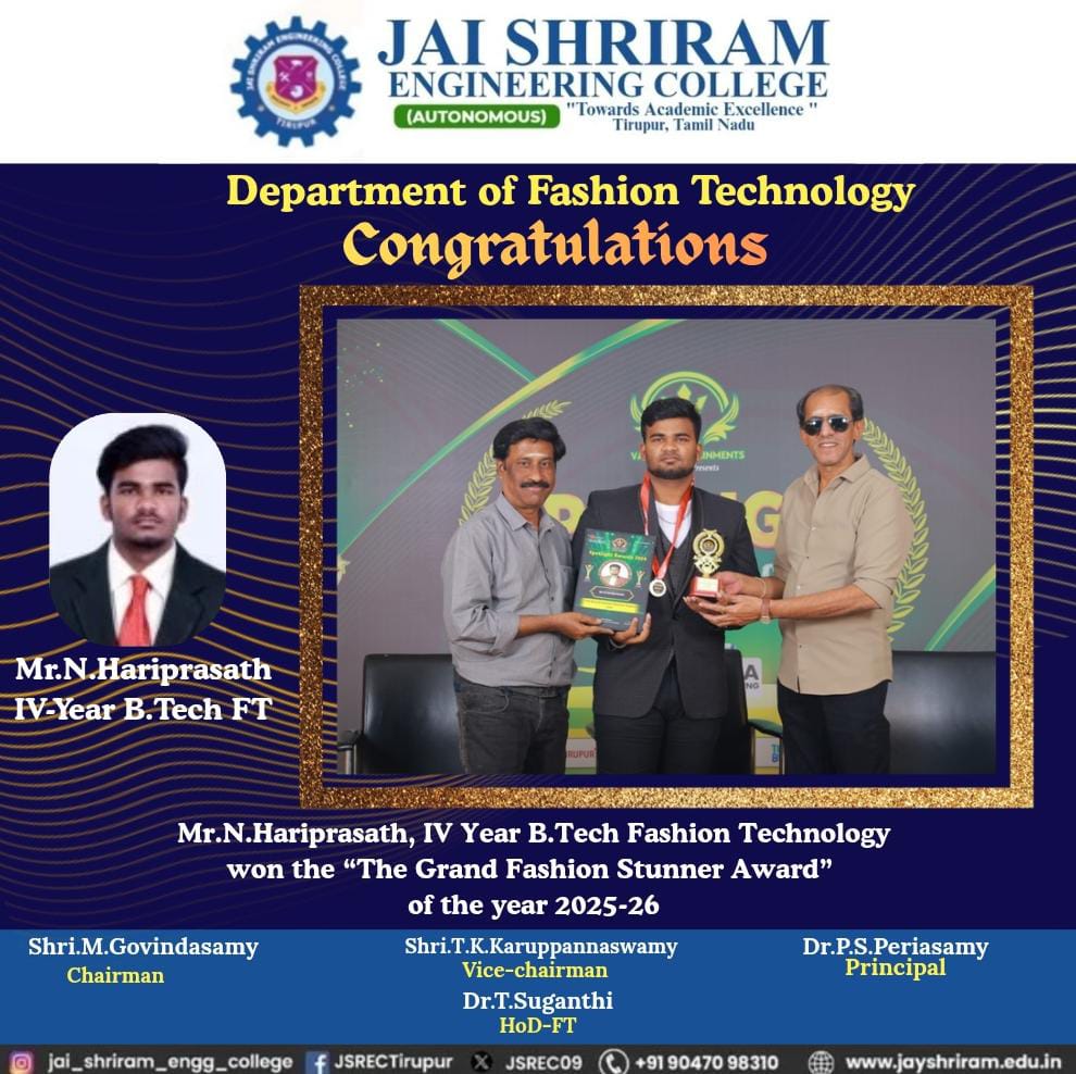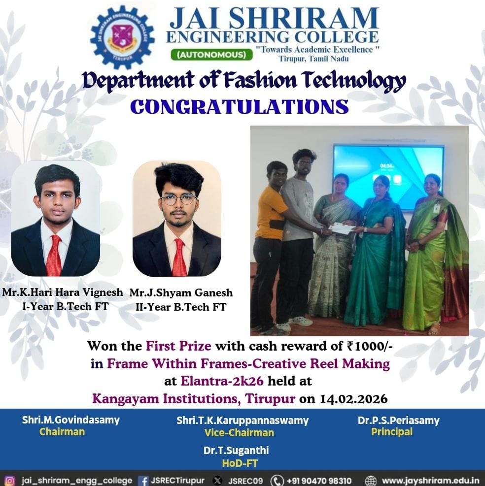 - The special lectures by the industrial experts give wide exposure to the students to know the current trend and technologies adapted in the fashion and garment industry respectively.
