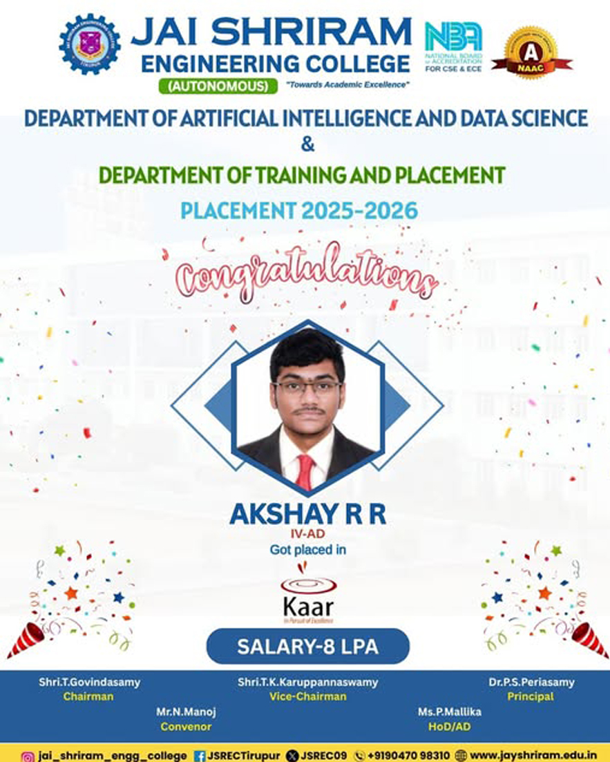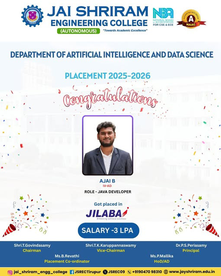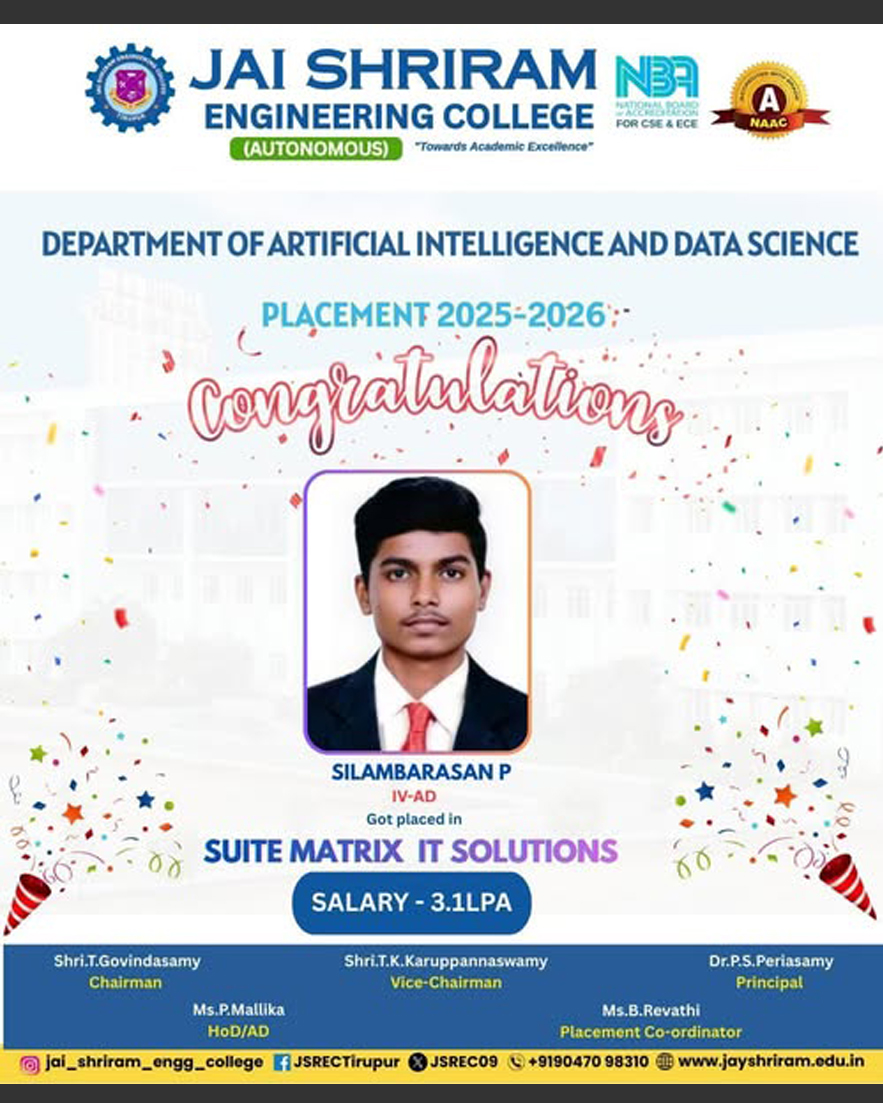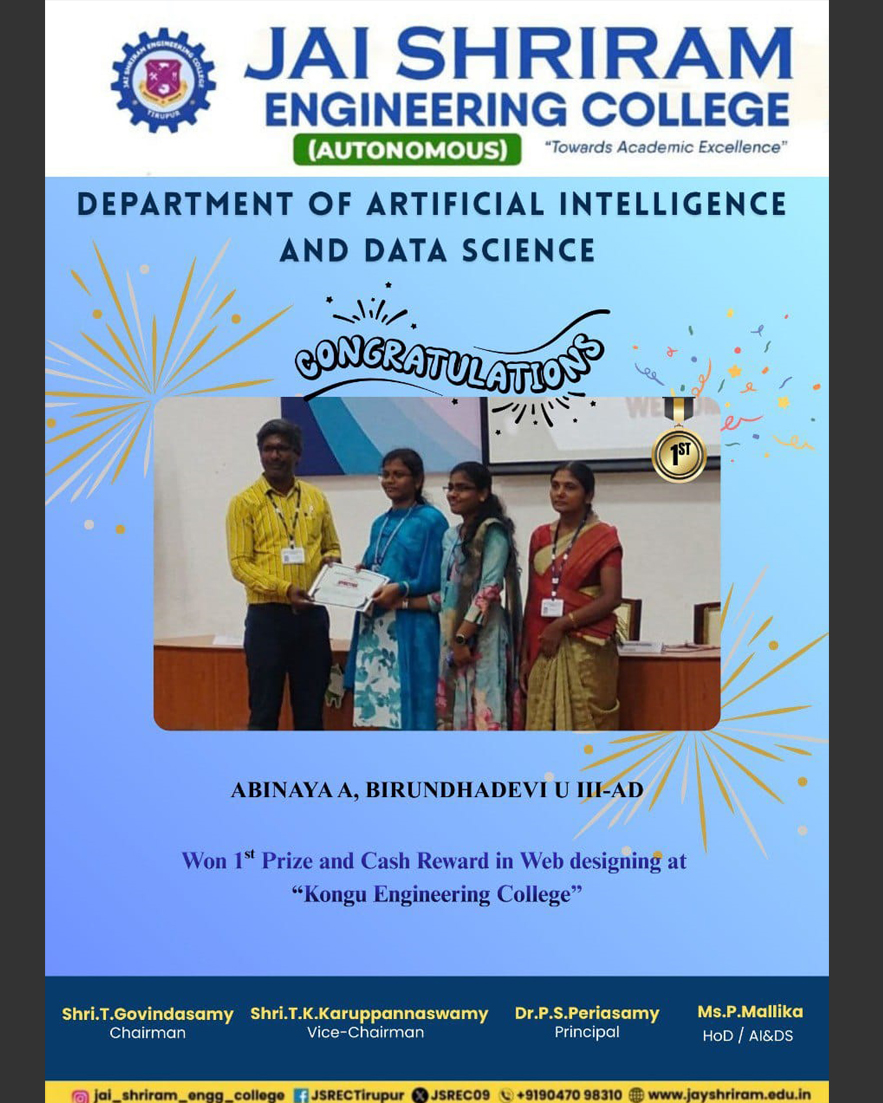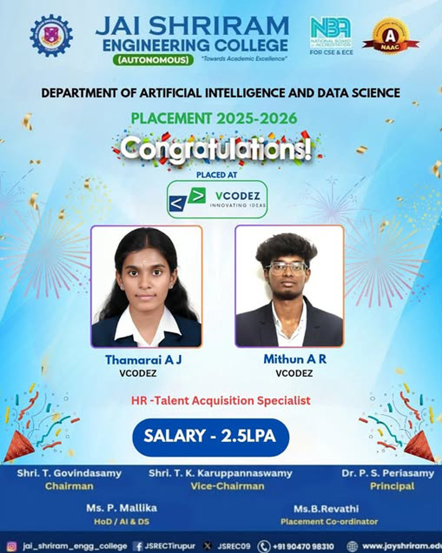 The Department of Artificial Intelligence and Data Science(AI&DS) is introduced in the year 2021 with an intake of 60 students. B.Tech (AI&DS) course is specially designed to enable students to build intelligent machines, software or applications with a cutting-edge combination of machine learning, analytics and visualization technologies.